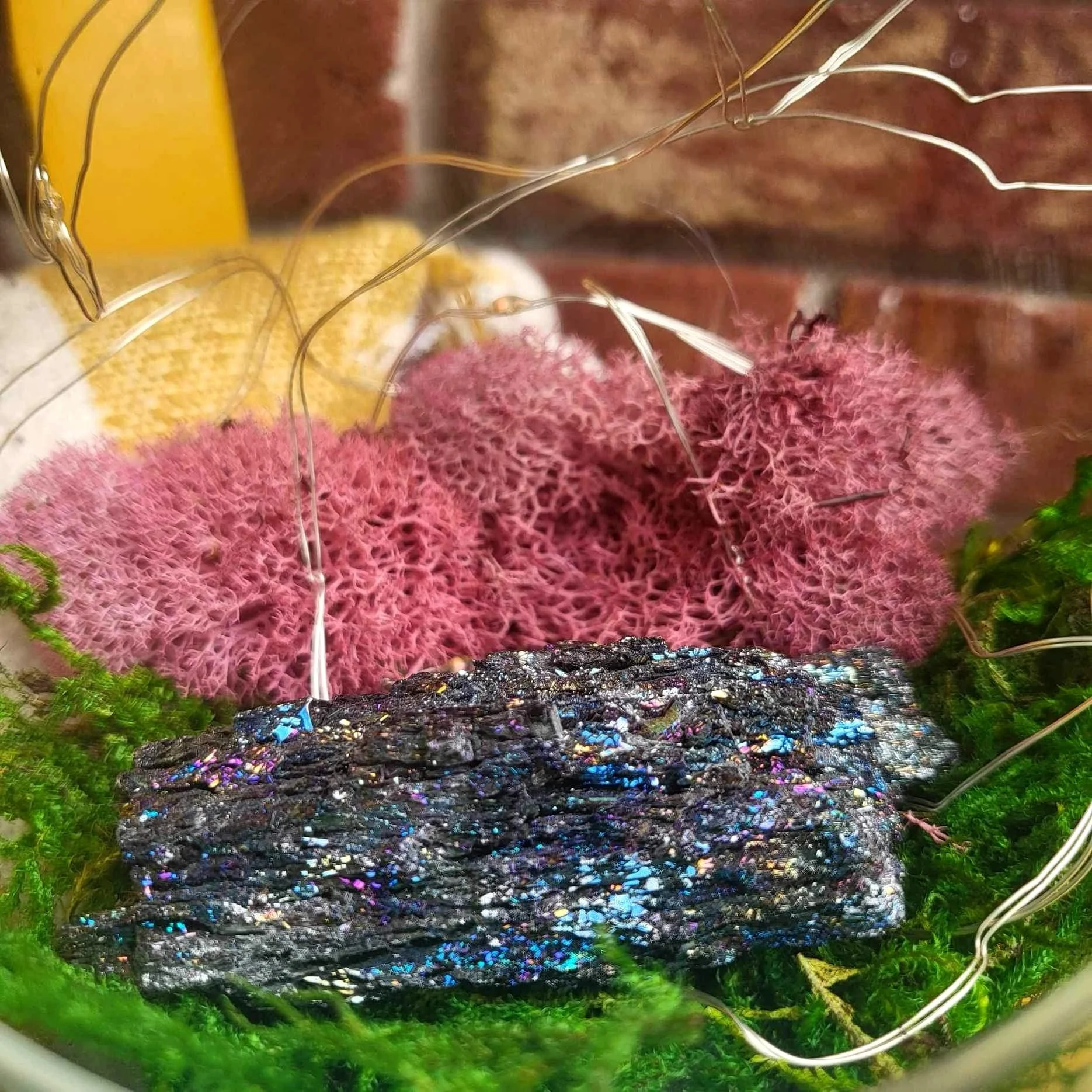 After a bit of a hiatus, we’re back with Ina’s Crystal Corner. But this time, the series is back with a bit of a twist. Since we’ve already covered Fern & Fossil’s standard crystal options (Amethyst, Green Aventurine, Lapis Lazuli, Citrine, & Rose Quartz), I’m going to be covering various crystals I’ve been using personally in my home gardening the past few years and letting you know which ones have worked best for me and perhaps some of the crystals I wish I avoided (plant-wise that is). To start us off, we’re learning all about Carborundum. This crystal has a very colorful iridescent appearance that shifts depending upon the angle of light shined upon it. I love this particular crystal’s aesthetic in my indoor gardening because it looks like a shiny tree bark or a fallen asteroid.