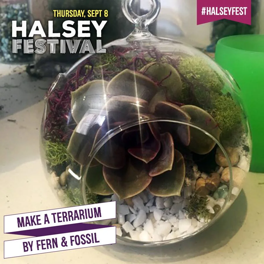 Fern & Fossil is happy to participate in this year's Halsey Festival, by collaborating with Index Art Center. Join us at our "Mini Terrarium Building Table." Participants will choose a plant, and create their own classic hanging terrarium project.