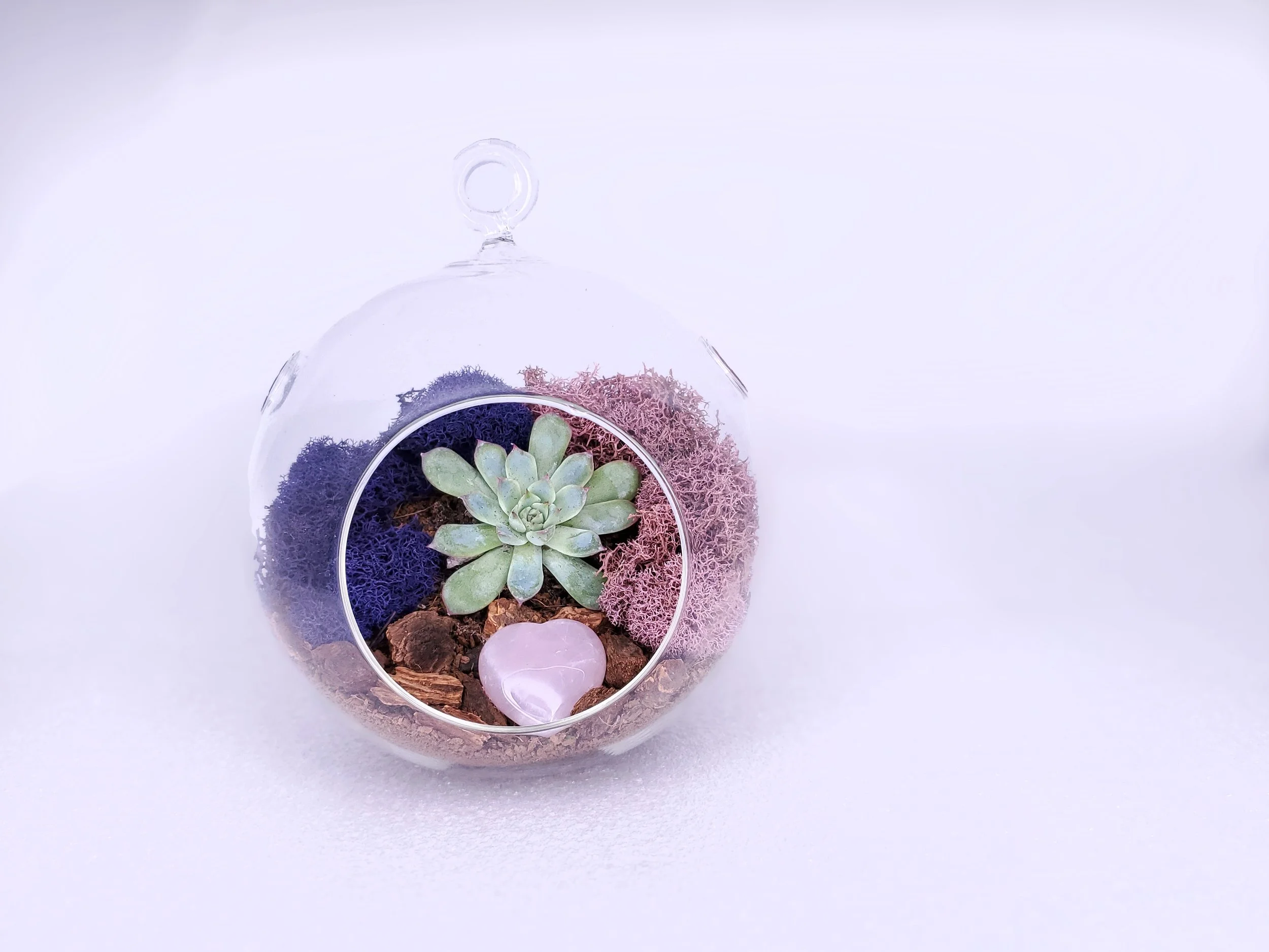 Choose from an array of lush plants and romantic touches like rose quartz, mini hearts, and rosy succulents to design a terrarium that reflects your love story. Our expert instructors will guide you step-by-step through the process, making sure you leave with a meaningful, living reminder of your time together.